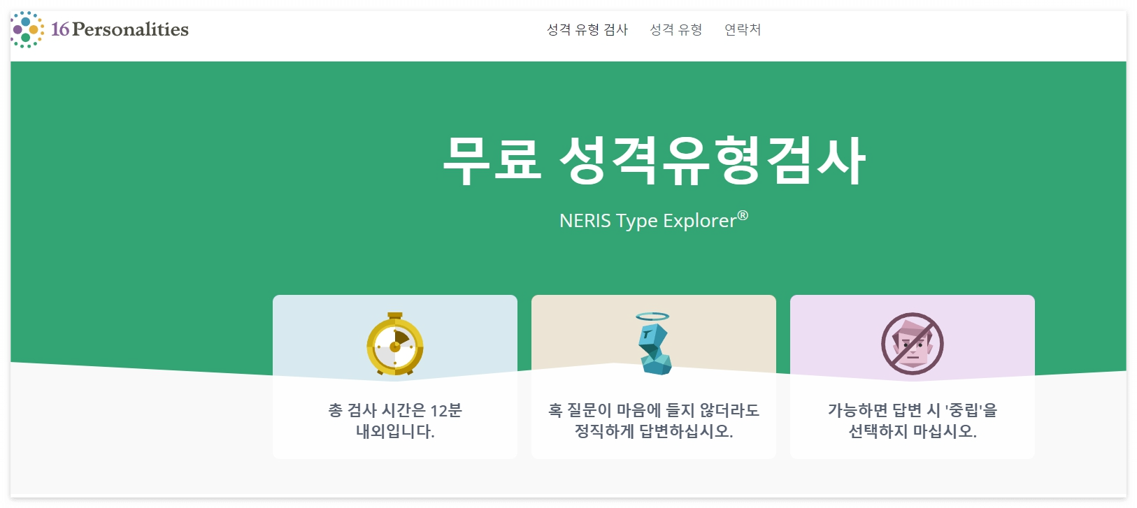 - 기타 사항 : 우리가 흔히 말하는 MBTI를 알아보는 테스트입니다.