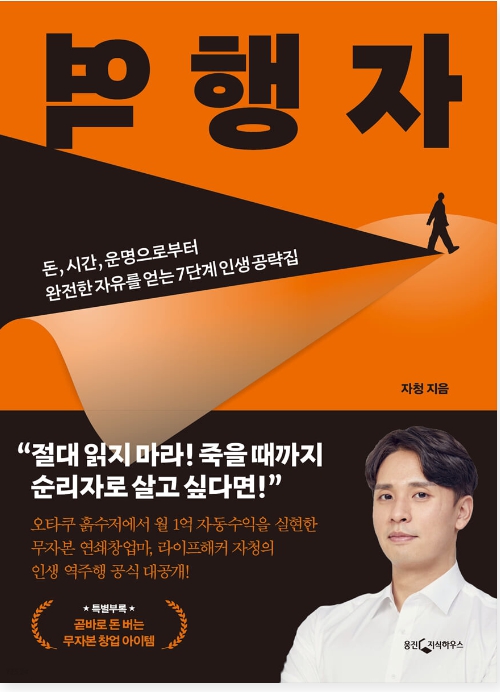 안녕하세요. 독서리뷰를 시작하게 된 나의티스토리입니다. 이번에 리뷰할 책은 유투브로 유명해진 일명 자청(자수성가청년)의 책 <역행자>입니다. 연봉 10억대를 만든 청년으로 예전에는 평균이하의 삶을 살았다고 자신을 소개하고 있습니다.